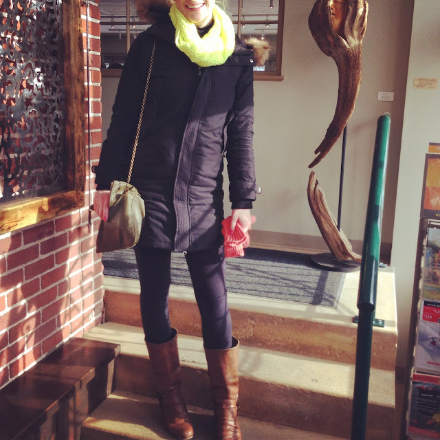 Outfit deets:  Bench jacket, H&M pants, Spring boots & headband, Club Monaco scarf, Ardene mitts & Aldo cross-body/clutch.