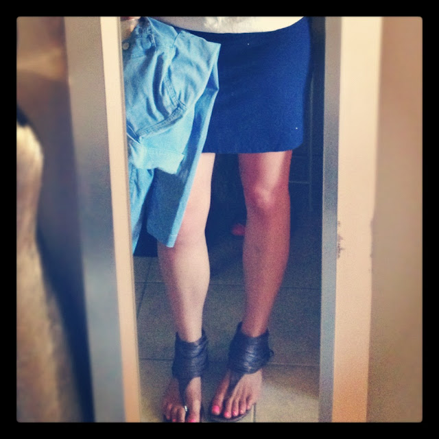 Rockin' my DIY cut off denim (these used to be men's jeans that I thrifted).